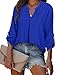 Refined quality: 95%polyester+5%spandex, polyester blouses for women. Beautiful color, wrinkle free material, lightweight, flowy, silky smooth and skin friendly. Sleeves can be rolled up and secured for a 3/4 look, perfect wear in all year