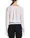 Features: V neck women blouse with cute lace collision design, Chic breathable hollow womens t shirts with patterned fabric, Three-quarter sleeves, Waist-slimming curved hem, This business casual women's top is stylish and elegant, making you full of intellectual beauty