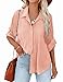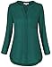 Features -- Fabric Has No Stretch, Designed in Plus Size, Oversized Loose Blouses Style, Slightly Pleated Design at Back Provide You a Comfortable and Relaxing Feel When You Move. Cuffed Sleeves, Roll Up Sleeves, Henley V Neck, Curved Hem Basic Casual Chiffon Blouses Shirts Tops.