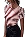 FEATURE: Short sleeve stripe shirts features with puff sleeve, striped print shirt, round neck, slim fit, office top, ladies cute elegant tops.