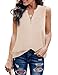 Design: Henley V Neck Tank Tops,Adjustable Zipper Dress Shirt,Ladies Sleeveless Blouse,Summer Chiffon Tunic Tank,Women Business Casual Tops