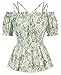 Feature: Adjustable spaghetti straps support sheer woven poly as it shapes an elasticized cold shoulder low cut crew neckline and fluttering short sleeves. Cute sexy loose fit lined shirts camisole blouse for women