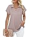 【Smooth Metal Zipper】 - Unlike many blouses for women, our short sleeve summer tops have a high-quality metal zipper collar V-neck. It has a reinforced clasp to prevent it from slipping. The zipper aligns and zips smoothly. And you can zip down to get better airflow to cool off in crowded places.
