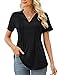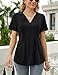 【Features】Blouses & button-down shirts, button up, v neck, lapel neck, short sleeve/long sleeve, pleated back, loose fit, solid color, lightweight, soft and comfortable to wear all day.