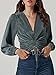 ❀ Features: deep v pleated crop tops for women, casual and elegant style, flowy bell long sleeve seep, stretchable waist with false knot front design, slim waist wrap and flared hem can cover your belly well and make you look slimmer. when you put on this gorgeous blouses, you can get compliments.