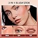 [Multi-Use Face Blush]: 3-in-1 blush stick is brings soft colors for cheek, but also be applied to the lips and eyelids. blush stick for cheeks will streamline your makeup time, create a beautiful and youthful skin a more energetic cheek tint. Cream blush for mature skin and suitable for all skin types.