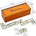 [CONVINIENT STORAGE]: With this carrying brown wood case, our wooden dominoes can be played domino game both indoors outdoors. It can protect the domino set from wear and tear, allowing it to travel anywhere