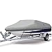 【REINFORCED & SNUG FIT】 This trailerable boat cover for Hard TOP boat has reinforced panels under bow, windshield, stern and other strength stress points to provide extra protection. Heavy duty elastic around bottom hem works great for a secure and snug fit.