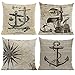 Nautical patterns are printed on the front sides of 18" x 18" pillow cases.