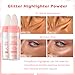 【Long-lasting Shine】The glitter highlighter makeup powder made of light and refreshing texture with luminous glitters.Easy coloring, sublime shimmer,Controls oil, conceals pores, hides pores, lasts, brightens, and makes skin look as bright as the sun for a glamorous, long-lasting look.without flying powder, making the makeup more exquisite.