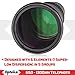 ADVANCED OPTICS: Featuring an optimized design, this lens uses a series of 6 optical glass elements (one SD super-low dispersion) in 5 groups to reduce chromatic and spherical aberrations throughout the aperture range. A high definition anti-reflective coating suppresses lens flare and ghosting for increased contrast and color fidelity.