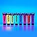 NEON – bright neon coloured in natural lighting, our range of face and body painting paints fluoresce spectacularly under UV lighting or blacklights producing an incredible UV glow