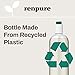 Bottle (minus lid) made of 65% recycled plastic (PCR).