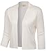 The high stretchy shrug cardigan features 3/4 sleeve, crew neck, hook-and-eye closure at neckline and cropped design.