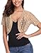 TOUCH OF STYLE: Add a beautiful dynamic to any outfit with our short sleeve bolero shrug. This bolero jacket features a solid mesh Crochet, Open Front Cropped Design detail, a chic shrug design, and a beautiful cut to crown it off. Choose from our lovely colors and treat yourself to a layering accessory you’ll simply love.