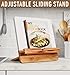 ✅ PERFECT SIZE LARGE BOOK STAND - This 12" x 12" tabletop book stand holds all popular book sizes including hardback cookbooks. This kitchen book holder is adjustable with a sliding kickstand and wood lip to hold any size cookbook in place at the angle you desire for convenient cooking.