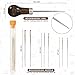 21 Piece Kit : Includes 3 assorted sizes of large eye needles, 6 curved needles, thread clipper, wood handled awl, thimble ring, 3 rolls of waxed thread, 2 bone folders, glue brush, and a ruler, with a bonus black canvas zipper pouch.