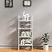 SPACE SAVER SHELF FOR SMALL SPACES - 23.6"L * 10.2"W * 63.4"H, 6-tier book shelf of 10.2” deep perfect fit any room, creating more storage space for your home without taking up too much space. The height of each storage shelf can be adjusted according to your hobbies or the height of the items. This white bookshelf will bring a natural aesthetic style to your home.