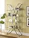 2.Solid Construction: Constructed from MDF board and metal, this bookcase’s open frame features geometric details on sides. Size: 76.9”H x16.5”Wx16.5”D, the distance between the shelf: 12.8”