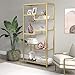 5 Tier Storage shelves ● This space saving bookshelf gold is suitably sized 23.6 x 11.8 x 62.2inches, featuring 5 open shelves makes it powerful for storage. Height between each shelf: 13.4 in(34 cm). Can not only meet the most needs of display such as artwork, ornaments but also store daily items. Each shelf can hold up to 22lbs.