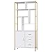 Long-lasting Material: With superior particleboard and thick square metal tube, the white and gold bookshelf is sturdy and long-lasting. The baking paint process makes the metal part of the coating color uniform and the coating is not easy to peel off. And the double-sided sticker process makes this gold bookshelf with drawers and doors much more sophisticated.