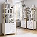 Multi-function White and Gold Bookshelf: A bookshelf with cabinet that combines function and decoration. The bookshelf with doors and shelves can be placed in the study, living room, kitchen, bedroom, and bathroom. The FINTONES bookshelf gold can also be used as a console for kitchenware, clothes, toy ornaments, flowers, and bath products.