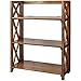 Bookcase. Top: Wood. Size: 38"H x 28"W x 13"D. Colors: Top: Brown, Base: Brown. Design/Look : Farmhouse. Material : Wood. Finish : Natural Finish. Shelf type : Horizontal. Assembly : Assembled. Back panel : Open Back. Color : Brown. Number of shelves : 3