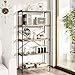 【Multifunctional Open Bookshelf】Our etagere bookshelves are designed with 5 open tiers. The height between each shelf is 13.8", giving you plenty of space to display your family photos, books, plants, decorations and other household essentials. The bottom of the bookshelf has height adjustable foot pads that won't wobble on uneven floors and won't leave scratches on the floor when you move the shelves. Open shelves are the best choice for your bedroom, living room, study, or office.