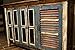 Product 2: Enloe storage cabinet has a unique two-tone design with its painted white outer case and rustic fir solid wood doors weaved in a herringbone style and finished at the base with a gold metal foundation