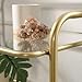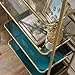 Lower two shelves feature teal tinted silk-screened glass for added visual interest. Powder coated metal frame for durability