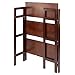 Measuring 65.4"H x 42.7"W x 43.5"D, this shelving unit tucks neatly into a corner or opened out along a wall to free up precious square footage.
