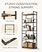 [Stable and Safe] X-shaped bars reinforce the structure, adjustable feet keep this tall book shelf balanced on slightly uneven floors, and the included anti-tip kit will help you fix it to the wall for greater stability and safety