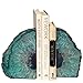 Color: Nature Agate Dyed Teal, each piece is in unique color and shape. Some color is dark but some is light. Due to dyeing, some bookends will slightly fade, please wipe the product clean before use.There are quarters and slabs shape, cut surface shows unique internal texture, the edging is left natural and rough to show off the natural beauty of the Agate stone.