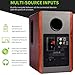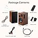 【CLASSIC WOODEN ENCLOSURE】 Stylish design speakers made with high quality MDF wood finish to apply to any home decor, featuring built-in amplifier, 4" full range bass driver, and 0.75" silk dome tweeter for high performance sound reproduction.