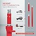 [HIGH LIFT] - This high lift bottle jack have a double ram design with extension screw. The car jack fully extends up to 16.54" on the basis of constant capacity and volume. The double extending ram makes it easy to put the jack in place and it extends enough to easily raise the high clearance cars.