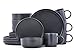 16 Piece Dinnerware Set – Gray brushed square porcelain dining sets. Includes 4 round dinner plates, 4 salad plates, 4 bowls and 4 mugs.