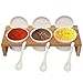 Condiment and dipping bowl set includes beautiful bamboo serving tray with 3 ceramic bowls, lids and spoons