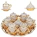 Includes a tray for six and a multifunctional piece that can serve as a sugar bowl or Turkish delight (lokum) dish.