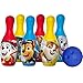 Set includes 6 bowling pins printed with colorful Paw Patrol graphics and 1 bowling ball