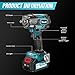 【Elaborate Design & Easy Maintenance】 This cordless impact wrench comes equipped with a toolbox, making it easy to carry when working outdoors. The soft all-rubber handle reduces fatigue during work, and the LED lights make it convenient to work in low-light environments. Additionally, the brushless wrench generates no heat or sparks during use, making maintenance easy and eliminating the need to replace the carbon brushes.
