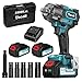 【POWERFUL BRUSHLESS MOTOR】- This 21V impact cordless wrench delivers to 258 ft-lbs of torque.Max no load speed is 3200 rpm impact rate for driving large fasteners and tough sockets,engine has a maximum of force 350N.m, allows you to tighten or loosen various nuts and bolts easily, save time and effort during work.