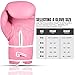 Different Sizes Boxing Gloves: 6oz,8oz,10oz ,12 oz 14oz .For further size guidance please look at the size chart in the pictures;Friendly on every type of skin in Women boxing gloves sizes;