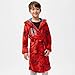 Animal flannel hooded boys bathrobe: Unique dinosaur pattern design, passionate and vibrant red color, two side pockets, attached waistband