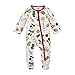 All over print design; Ring snap zipper guard; Ankle to chin side zip up for easy dressing; Reversible fold over mitten cuffs to prevent scratching; Grippers on soles for slip and fall prevention