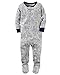 Zips from ankle to chin. Worry free safety tab. Built-in gripper footie. Ribbed cuffs and neckline