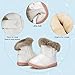 【Hook and loop design】The boy snow boots with Hook and loop design makes your life simple, no need to tie shoelaces, liberating the hands of parents and children.The winter shoes for girls and boys hook buckle at the top tightens of to prevent snow from entering, making it easy for the child to put on and take off the toddler snow boots off