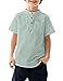 Feature: Linen shirts for boys. Boys button down shirt. Casual henley neck shirts, simple style, solid color, short sleeve, button-down closure, patch pocket at chest, rounded hem, side split.