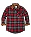 Flannel shirt perfect for transitional weather: Spring, Autumn and Winter. Cozy enough for playing or lounging at home. Great for layering or worn alone, without being bulky.
