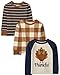 MULTIPACK — 3-pack of tops: 1 top with contrast raglan sleeve and 'Thankful' with turkey graphic at front; 1 buffalo plaid top; 1 striped top