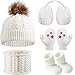 Proper size: the pompoms on the hat make your baby look more cute and attractive, which is suitable for children aged 6-36 months; Hat is 27 x 27 cm/ 10.6 x 10.6 inches; Handkerchief diameter is 19 cm/ 5.9 inches; Mittens size is 13.5 x 11 cm/ 5.3 x 4.3 inches; The child's beanie has enough elasticity for growing into resulting in years of use